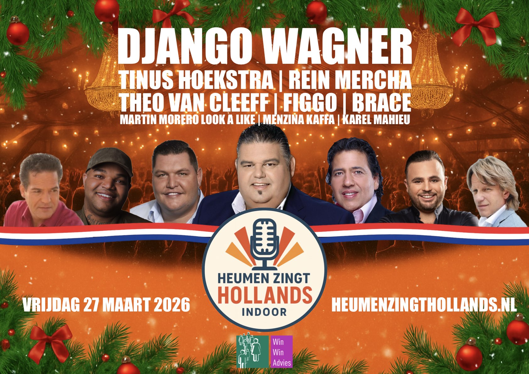 Verras vrienden, familie of collega’s met tickets voor Heumen Zingt Hollands – Indoor Editie 2026 en leg een avond vol Hollandse gezelligheid, meezingers en topentertainment onder de kerstboom!